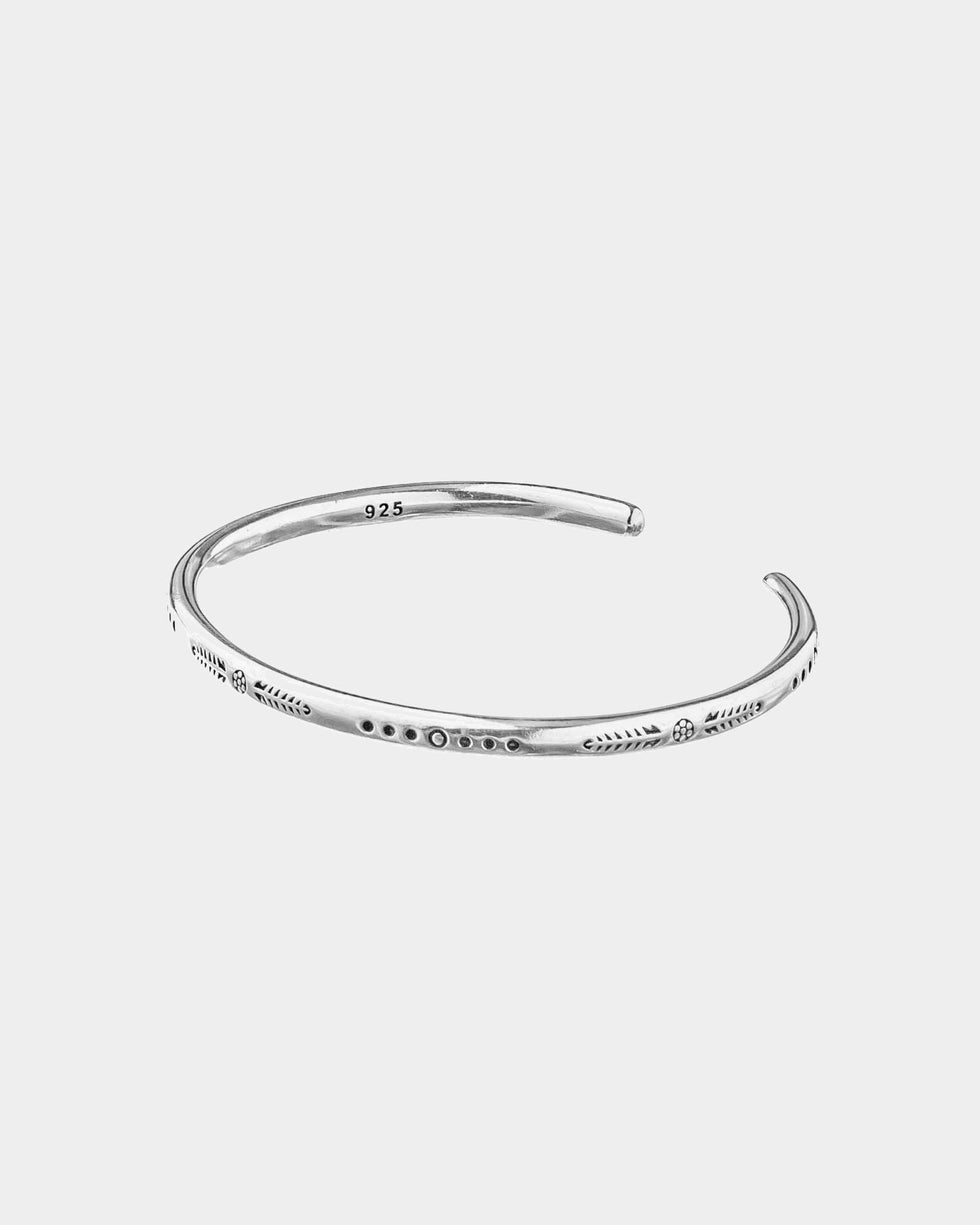 Introducing the Eternelle Cuff: a symbol of elegance and timelessness. Crafted from 925 sterling silver, this cuff highlights intricate engraved details. Elevate your style and make a statement with this exquisite piece.