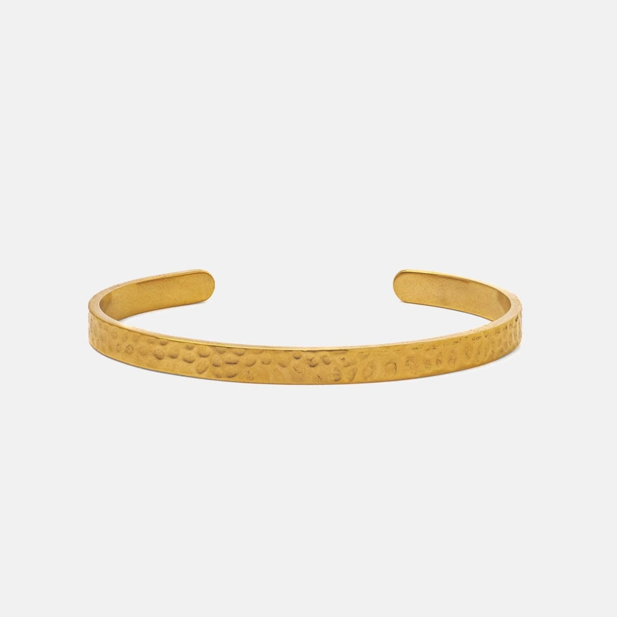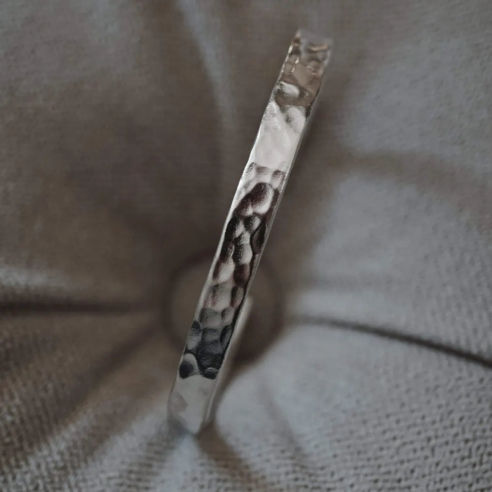 Indulge in effortless elegance with our unisex Hammered Bangle. Hand-crafted from sterling silver and available with platinum or 18k gold plating, this luxurious accessory will elevate any outfit. The unique hammered design adds a touch of sophistication, making it a must-have for any fashion-forward individual.