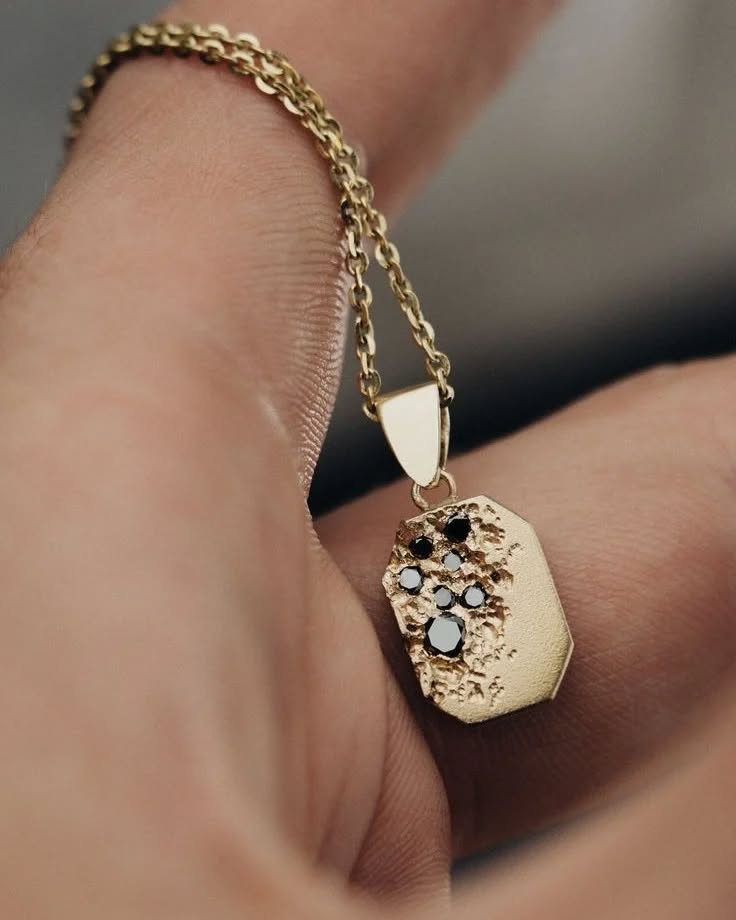Indulge in the uniqueness of our Imperfect Necklace, featuring a delicate shape adorned with small zircon black stones. Embrace the beauty in imperfection and elevate your style with this exclusive piece. Handcrafted with care, this necklace adds a touch of luxury to any outfit.