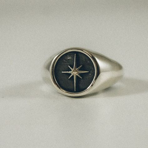 Elevate your style with our North Star I Ring. Crafted in 925 sterling silver, this ring features a stunning north star design adorned with black enamel. A symbol of guidance and direction, this luxurious ring will add a touch of elegance and sophistication to any outfit.
