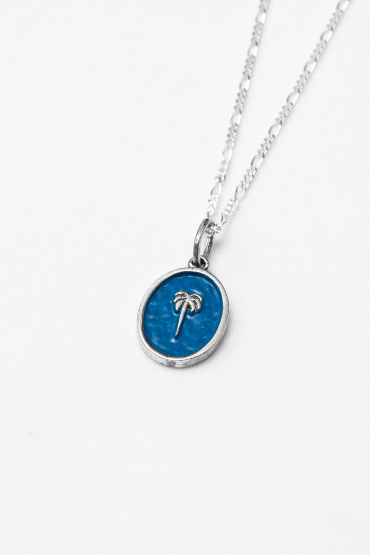 Escape to paradise with our stunning PalmTree Necklace. Crafted with intricate detail, the palm tree features mesmerizing blue enamel for a touch of tropical luxury. Add a touch of sophistication to any outfit with this exclusive piece that will transport you to a world of elegance and beauty.