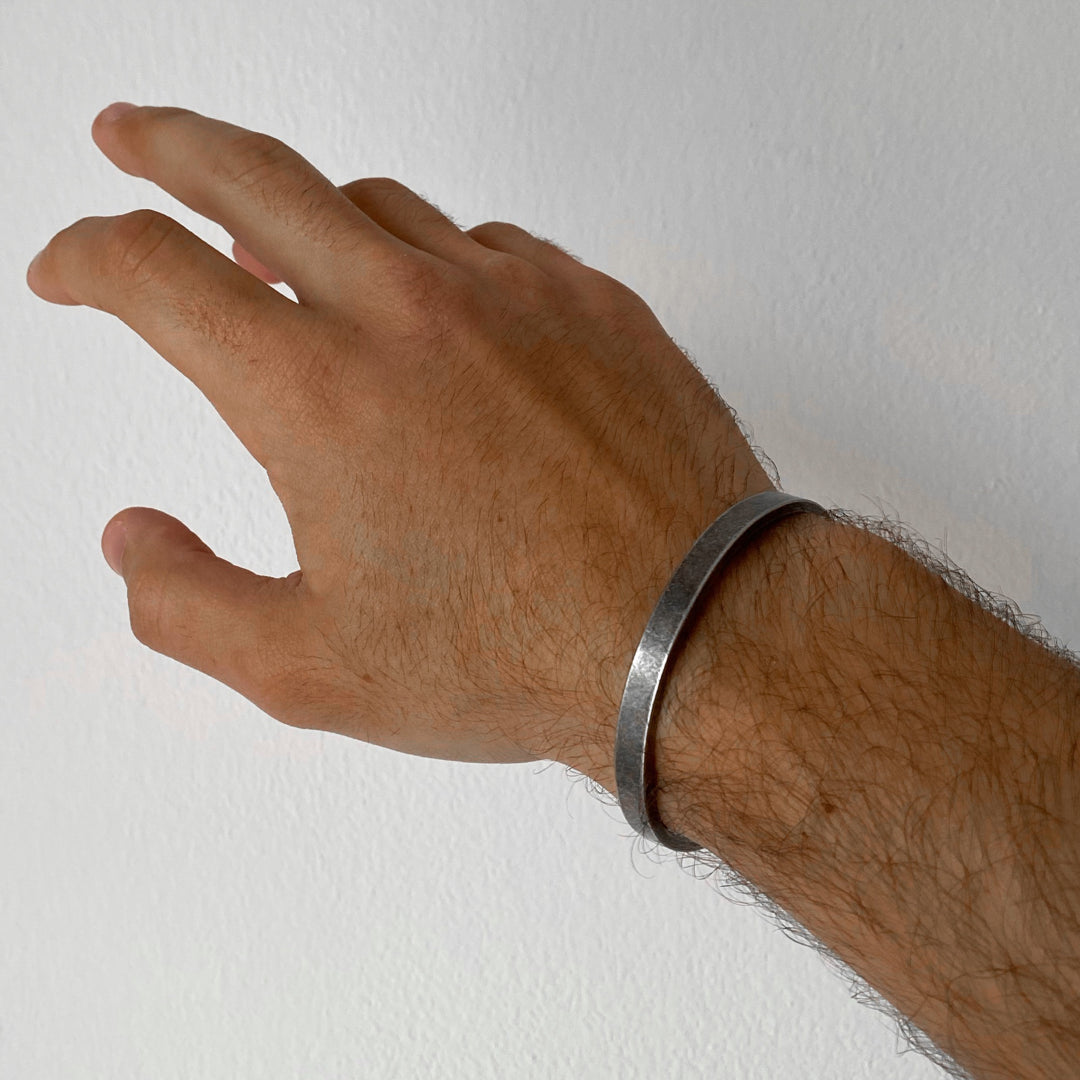 Add some edge to your jewelry collection with our Rough Bangle! Made with raw, matte platinum plating on 925 sterling silver, this bangle is perfect for those who don't take themselves too seriously. Go from blah to bold with this statement piece. (Warning: may cause sudden bursts of confidence and compliments.)